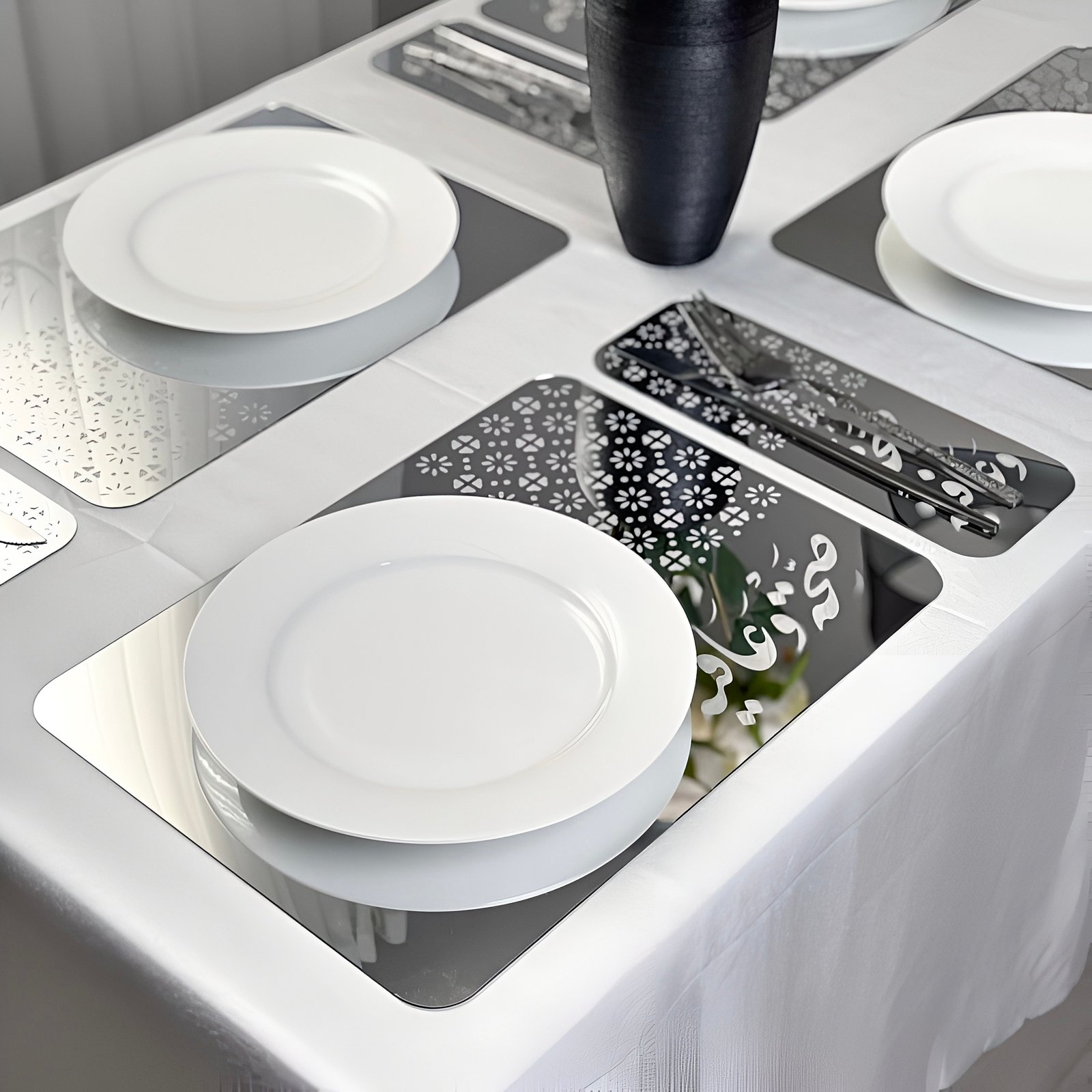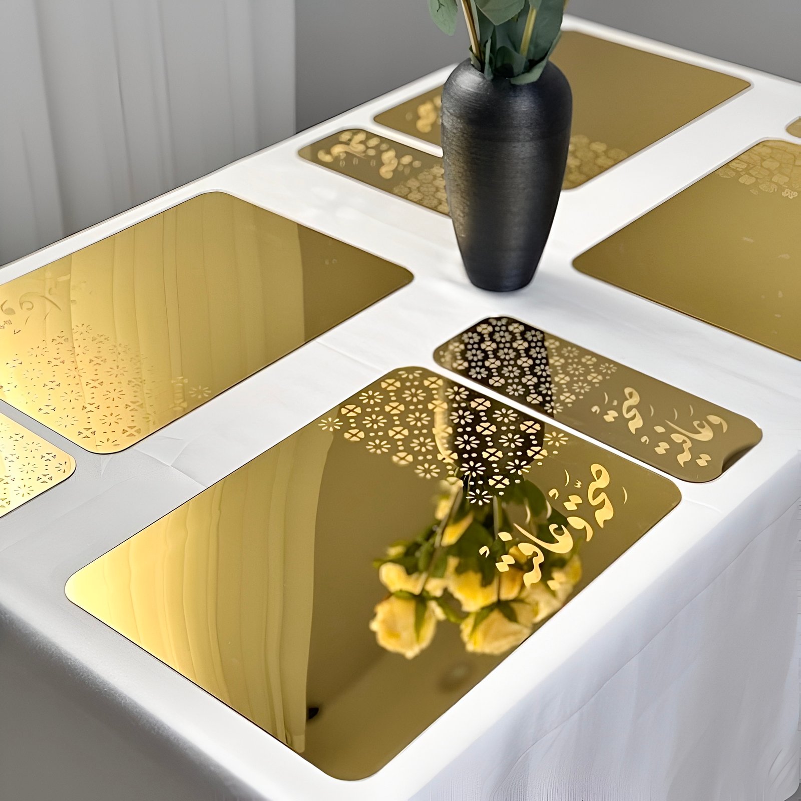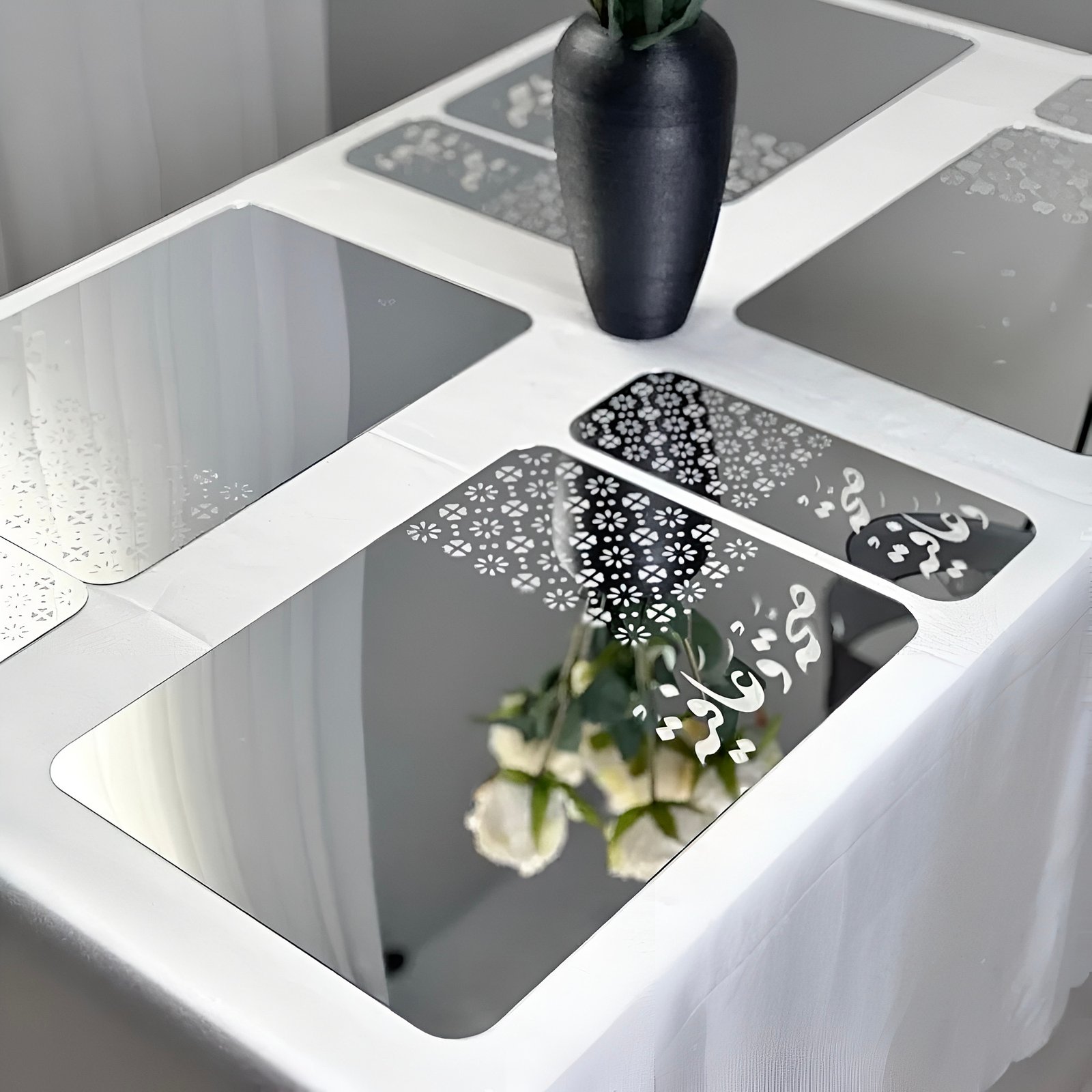 تصميم عاكس كالمرآة يمنح طاولتك بريقاً وأناقة لا تُضاهى، مثالي للمناسبات الفخمة والعائلية.