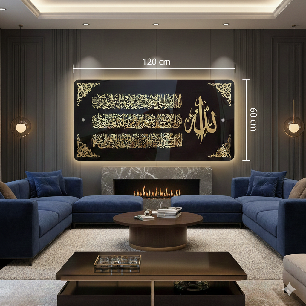 هل تبحث عن قطعة ديكور تجمع بين الروحانية والأناقة العصرية؟ نقدم لكم كادر آية الكرسي الفاخر، المصمم بعناية ليكون القطعة المركزية في صالونك.